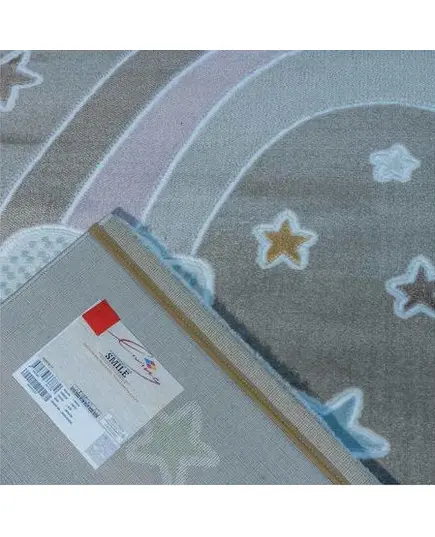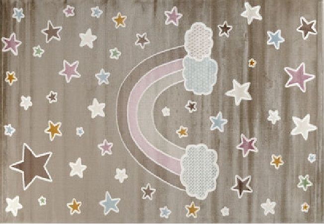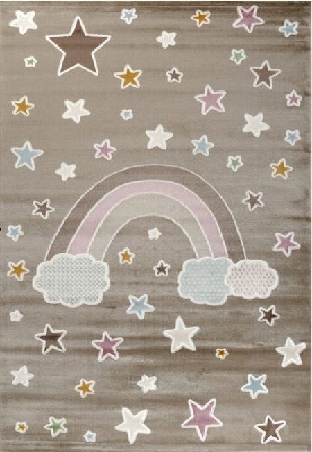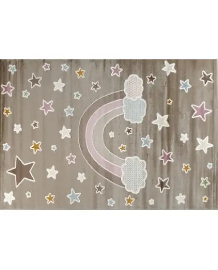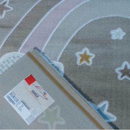 Χαλί μηχανής από τη σειρά Smile της εταιρείας Tzikas Carpets με ουράνιο τόξο σε καφετί αποχρώσεις και λεπτομέρειες λιλά,καφέ,σιέλ. Είναι ιδανικό για δωμάτιο κοριτσιού και αγοριού. Ανθεκτικό χαλί στην σκληρή καθημερινή καταπόνηση από το παιδικό παιχνίδι. Είναι κατασκευασμένο με ανεξίτηλα νήματα από heatset πολυπροπυλένιο και polyester, ενώ το βάρος του είναι 2.500gsm. Έχει ανάγλυφη επιφάνεια με απαλό πέλος ύψους 11mm και πυκνότητα 482.000 κόμπους/τ.μ. Το υπόστρωμά του είναι υφαντό. Είναι αντιστατικό άρα το σκούπισμα με ηλεκτρική σκούπα είναι εύκολο και αποτελεσματικό. Τα χαλιά της εταιρείας Tzikas Carpets είναι υποαλλεργικά και φιλικά προς την υγεία.