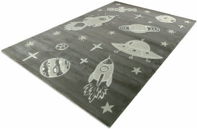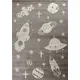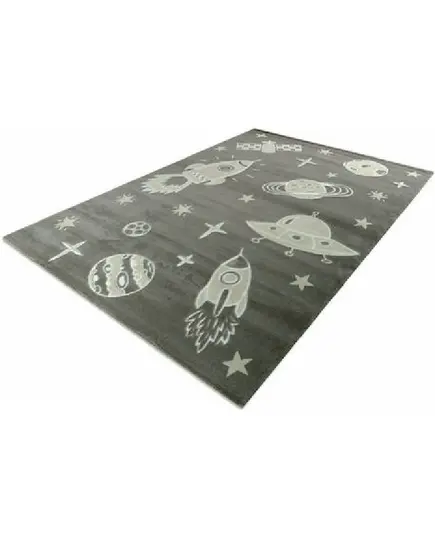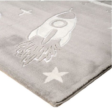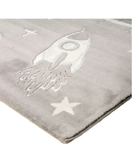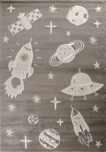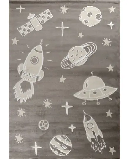 Χαλί μηχανής από τη σειρά Smile της εταιρείας Tzikas Carpets με πλανήτες και διαστημόπλοια σε γκρι αποχρώσεις. Είναι ιδανικό για το παιδικό δωμάτιο . Ανθεκτικό χαλί στην σκληρή καθημερινή καταπόνηση από το παιδικό παιχνίδι. Είναι κατασκευασμένο με ανεξίτηλα νήματα από heatset πολυπροπυλένιο και polyester, ενώ το βάρος του είναι 2.500gsm. Έχει ανάγλυφη επιφάνεια με απαλό πέλος ύψους 11mm και πυκνότητα 482.000 κόμπους/τ.μ. Το υπόστρωμά του είναι υφαντό. Είναι αντιστατικό άρα το σκούπισμα με ηλεκτρική σκούπα είναι εύκολο και αποτελεσματικό. Τα χαλιά της εταιρείας Tzikas Carpets είναι υποαλλεργικά και φιλικά προς την υγεία.