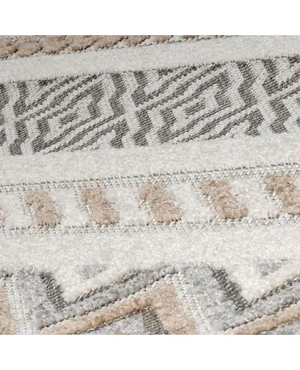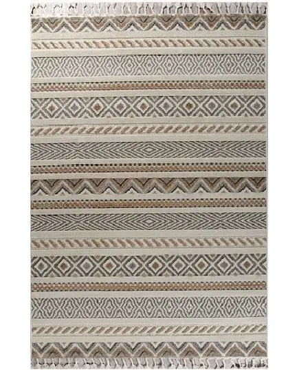 Μηχανοποίητο χαλί 4 εποχών 133x190 από τη σειρά Tenerife της εταιρείας Tzikas Carpets με γεωμετρικά σχέδια και ριγέ μοτίβο. Εκλεπτυσμένο χαλί με καλοδουλεμένη μίξη χρωμάτων σε γκρι και εκρού αποχρώσεις με μπεζ-καφέ λεπτομέρειες. Μπορεί να τοποθετηθεί σε όλους τους χώρους του σπιτιού, αναβαθμίζοντας την αισθητική τους, καθώς προσδίδει μία πινελιά πολυτέλειας. Iδανικό για όλες τις εποχές με μοναδική αίσθηση στο πάτημα, θα στολίσει τον χώρο σας καθόλη τη διάρκεια του έτους. Είναι κατασκευασμένο με ανεξίτηλα νήματα σύνθεσης 100% frise πολυπροπυλένιο. Η βάση είναι ψάθα, ενώ το μοτίβο είναι ανάγλυφο από frise νήματα. Το βάρος του χαλιού είναι 1.300gsm και έχει πέλος ύψους 3mm. Φέρει περίτεχνο κρόσσι κοτσίδα, που προσδίδει μία boho αισθητική. Το υπόστρωμα είναι υφαντό και καθιστά το χαλί ανθεκτικό στην χρήση και τις πλύσεις. Είναι αντιστατικό επομένως δεν μαγνητίζονται χνούδια, μικροσωματίδια και σκόνη στην επιφάνειά του, ενώ το σκούπισμα με ηλεκτρική σκούπα είναι εύκολο και αποτελεσματικό. Τα χαλιά της εταιρείας Tzikas Carpets είναι υποαλλεργικά και φιλικά προς την υγεία και το περιβάλλον.