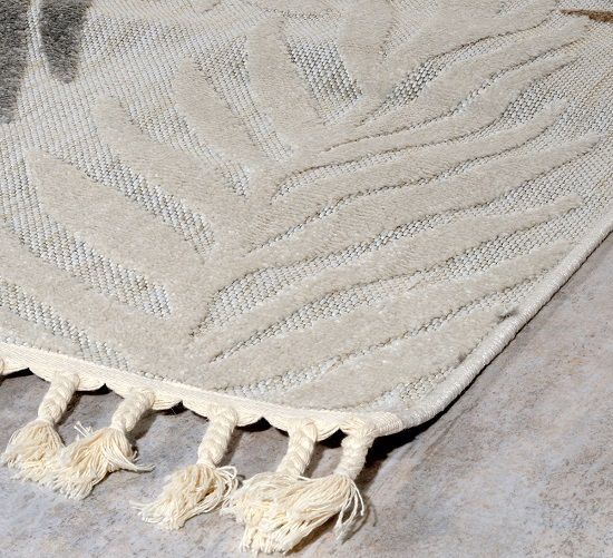 Μηχανοποίητο χαλί 4 εποχών 133x190 από τη σειρά Tenerife της εταιρείας Tzikas Carpets, με tropical σχέδιο σε μοντέρνο στυλ. Εκλεπτυσμένο χαλί με καλοδουλεμένη μίξη χρωμάτων σε εκρού αποχρώσεις με γκρι και καφέ λεπτομέρειες. Είναι κατασκευασμένο με ανεξίτηλα νήματα σύνθεσης 100% frise πολυπροπυλένιο και έχει ανάγλυφο μοτίβο. Μπορεί να τοποθετηθεί σε όλους τους χώρους του σπιτιού, αναβαθμίζοντας την αισθητική τους, καθώς προσδίδει μία πινελιά πολυτέλειας. Iδανικό για όλες τις εποχές με μοναδική αίσθηση στο πάτημα, θα στολίσει τον χώρο σας καθόλη τη διάρκεια του έτους. Το βάρος του χαλιού είναι 1.300gsm και έχει πέλος ύψους 3mm. Έχει περίτεχνο κρόσσι πλεξούδα, που προσδίδει μία boho αισθητική. Το υπόστρωμα είναι υφαντό και καθιστά το χαλί ανθεκτικό στην χρήση και τις πλύσεις. Είναι αντιστατικό επομένως δεν μαγνητίζονται χνούδια, μικροσωματίδια και σκόνη στην επιφάνειά του, ενώ το σκούπισμα με ηλεκτρική σκούπα είναι εύκολο και αποτελεσματικό. Τα χαλιά της εταιρείας Tzikas Carpets είναι υποαλλεργικά και φιλικά προς την υγεία και το περιβάλλον.
