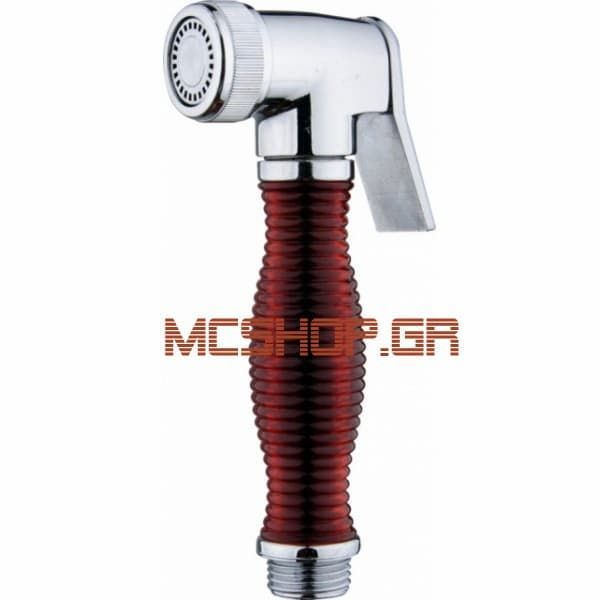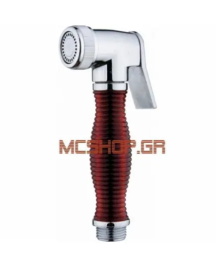 Τηλέφωνο μπάνιου μονού ψεκασμού ανοξείδωτο-κόκκινο + σπιράλ 1,50 μέτρου + βάση στήριξης χρωμέ ICH3010