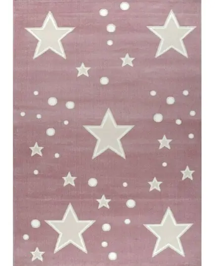 Χαλί μηχανής από τη σειρά Smile της εταιρείας Tzikas Carpets με αστέρια. Σε ροζ χρώμα είναι ιδανικό για το κοριτσίστικο δωμάτιο. Ανθεκτικό χαλί στην σκληρή καθημερινή καταπόνηση από το παιδικό παιχνίδι. Είναι κατασκευασμένο με ανεξίτηλα νήματα από heatset πολυπροπυλένιο και polyester, ενώ το βάρος του είναι 2.500gsm. Έχει ανάγλυφη επιφάνεια με απαλό πέλος ύψους 11mm και πυκνότητα 482.000 κόμπους/τ.μ. Το υπόστρωμά του είναι υφαντό. Είναι αντιστατικό άρα το σκούπισμα με ηλεκτρική σκούπα είναι εύκολο και αποτελεσματικό. Τα χαλιά της εταιρείας Tzikas Carpets είναι υποαλλεργικά και φιλικά προς την υγεία.