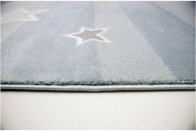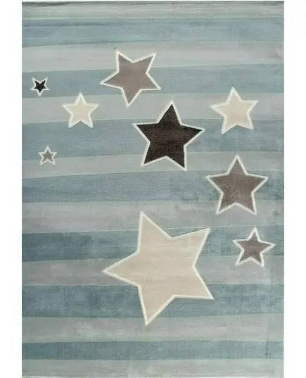 Χαλί μηχανής από τη σειρά Smile της εταιρείας Tzikas Carpets με αστέρια. Σε σιελ αποχρώσεις με εκρού, καφέ και γκρι λεπτομέρειες είναι ιδανικό για το παιδικό δωμάτιο. Ανθεκτικό χαλί στην σκληρή καθημερινή καταπόνηση από το παιδικό παιχνίδι. Είναι κατασκευασμένο με ανεξίτηλα νήματα από heatset πολυπροπυλένιο και polyester, ενώ το βάρος του είναι 2.500gsm. Έχει ανάγλυφη επιφάνεια με απαλό πέλος ύψους 11mm και πυκνότητα 482.000 κόμπους/τ.μ. Το υπόστρωμά του είναι υφαντό. Είναι αντιστατικό άρα το σκούπισμα με ηλεκτρική σκούπα είναι εύκολο και αποτελεσματικό. Τα χαλιά της εταιρείας Tzikas Carpets είναι υποαλλεργικά και φιλικά προς την υγεία.