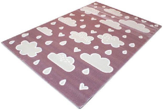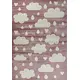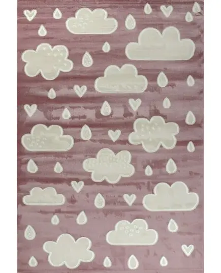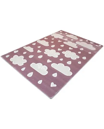 Χαλί μηχανής από τη σειρά Smile της εταιρείας Tzikas Carpets με συννεφάκια. Σε ροζ χρώμα είναι ιδανικό για το κοριτσίστικο δωμάτιο. Ανθεκτικό χαλί στην σκληρή καθημερινή καταπόνηση από το παιδικό παιχνίδι. Είναι κατασκευασμένο με ανεξίτηλα νήματα από heatset πολυπροπυλένιο και polyester, ενώ το βάρος του είναι 2.500gsm. Έχει ανάγλυφη επιφάνεια με απαλό πέλος ύψους 11mm και πυκνότητα 482.000 κόμπους/τ.μ. Το υπόστρωμά του είναι υφαντό. Είναι αντιστατικό άρα το σκούπισμα με ηλεκτρική σκούπα είναι εύκολο και αποτελεσματικό. Τα χαλιά της εταιρείας Tzikas Carpets είναι υποαλλεργικά και φιλικά προς την υγεία.