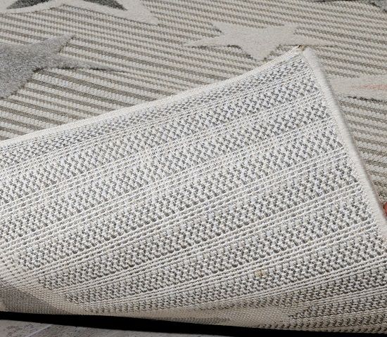Χαλί μηχανής 4 εποχών 1,60χ2,30 από τη σειρά Mallorca της εταιρείας Tzikas Carpets. Έχει χαριτωμένο παιδικό σχέδιο με αστεράκια σε εκρού - γκρι βάση και ροζ - γκρι λεπτομέρειες. Ανθεκτικό χαλί στην σκληρή καθημερινή καταπόνηση από το παιδικό παιχνίδι. Μπορεί να τοποθετηθεί στο παιδικό ή βρεφικό δωμάτιο, αναβαθμίζοντας την αισθητική του. Iδανικό για όλες τις εποχές με μοναδική αίσθηση στο πάτημα, θα στολίσει το δωμάτιο του παιδιού σας καθόλη τη διάρκεια του έτους. Είναι κατασκευασμένο με ανεξίτηλα νήματα σύνθεσης 100% frise πολυπροπυλένιο και έχει ανάγλυφο σχέδιο. Το υπόστρωμα είναι υφαντό και καθιστά το χαλί ανθεκτικό στην χρήση και τις πλύσεις. Το βάρος του χαλιού είναι 1.300gsm και έχει πέλος ύψους 3mm. Είναι πλενόμενο και αντιστατικό, άρα το σκούπισμα με ηλεκτρική σκούπα είναι αποτελεσματικό και ο καθαρισμός του εύκολος. Τα χαλιά της εταιρείας Tzikas Carpets είναι υποαλλεργικά και φιλικά προς την υγεία και το περιβάλλον.