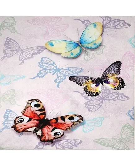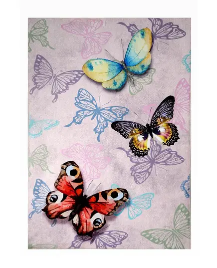 Χαλί μηχανής 4 εποχών από τη σειρά Astra της εταιρείας Tzikas Carpets με πεταλούδες. Σε ροζ απόχρωση με πολύχρωμες λεπτομέρειες είναι ιδανικό για δωμάτιο κοριτσιού. Ανθεκτικό χαλί στην σκληρή καθημερινή καταπόνηση από το παιδικό παιχνίδι. Το εντυπωσιακό του σχέδιο είναι δημιουργημένο με την μέθοδο ψηφιακής εκτύπωσης που εγγυάται έντονα χρώματα και ανθεκτικότητα στον χρόνο. H επάνω επιφάνεια είναι κατασκευασμένη με ανεξίτηλα νήματα σύνθεσης 100% polyester in pile. Το υπόστρωμα είναι υφαντό και 100% βαμβακερής ποιότητας. Το βάρος του χαλιού είναι 1.400gsm. Είναι αντιστατικό άρα το σκούπισμα με ηλεκτρική σκούπα είναι εύκολο και αποτελεσματικό. Τα χαλιά της εταιρείας Tzikas Carpets είναι υποαλλεργικά και φιλικά προς την υγεία και το περιβάλλον.