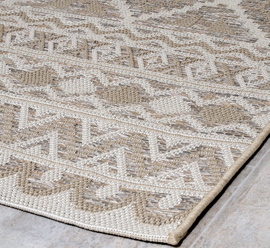 Χαλί μηχανής 160x230 από τη σειρά Novo της εταιρείας Tzikas Carpets, με γεωμετρικό σχέδιo και μοντέρνο στυλ. Εκλεπτυσμένο χαλί με καλοδουλεμένη μίξη χρωμάτων σε μπεζ και εκρού αποχρώσεις. Ιδανικό για όλους τους χώρους, θα στολίσει το σπίτι σας τους καλοκαιρινούς μήνες, προσδίδοντας μία πινελιά πολυτέλειας. Μπορεί να τοποθετηθεί σε εσωτερικό ή και σε εξωτερικό χώρο. Είναι κατασκευασμένο από συνθετική ψάθα 100% frise πολυπροπυλένιο. Το βάρος του χαλιού είναι 1.700gsm. Το υπόστρωμα είναι υφαντό που το καθιστά ανθεκτικό στη χρήση και τις πλύσεις. Είναι αντιστατικό επομένως δεν μαγνητίζει χνούδια, μικροσωματίδια και σκόνη στην επιφάνειά του, ενώ το σκούπισμα με ηλεκτρική σκούπα είναι εύκολο και αποτελεσματικό. Τα χαλιά της εταιρείας Tzikas Carpets είναι υποαλλεργικά και φιλικά προς την υγεία και το περιβάλλον.