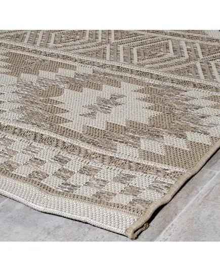 Χαλί μηχανής 160x230 από τη σειρά Novo της εταιρείας Tzikas Carpets, με γεωμετρικό σχέδιo και μοντέρνο στυλ. Εκλεπτυσμένο χαλί με καλοδουλεμένη μίξη χρωμάτων σε μπεζ και εκρού αποχρώσεις. Ιδανικό για όλους τους χώρους, θα στολίσει το σπίτι σας τους καλοκαιρινούς μήνες, προσδίδοντας μία πινελιά πολυτέλειας. Μπορεί να τοποθετηθεί σε εσωτερικό ή και σε εξωτερικό χώρο. Είναι κατασκευασμένο από συνθετική ψάθα 100% frise πολυπροπυλένιο. Το βάρος του χαλιού είναι 1.700gsm. Το υπόστρωμα είναι υφαντό που το καθιστά ανθεκτικό στη χρήση και τις πλύσεις. Είναι αντιστατικό επομένως δεν μαγνητίζει χνούδια, μικροσωματίδια και σκόνη στην επιφάνειά του, ενώ το σκούπισμα με ηλεκτρική σκούπα είναι εύκολο και αποτελεσματικό. Τα χαλιά της εταιρείας Tzikas Carpets είναι υποαλλεργικά και φιλικά προς την υγεία και το περιβάλλον.