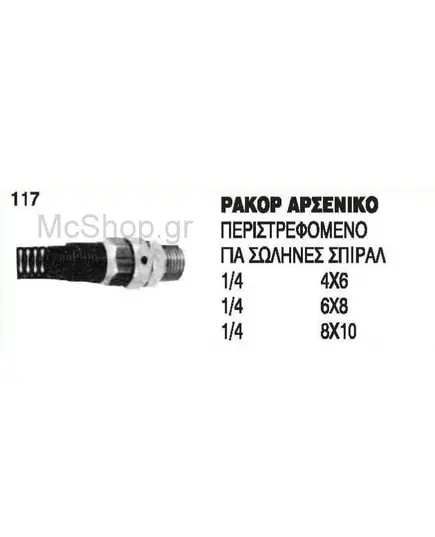 Ρακόρ αρσενικό περιστρεφόμενο για σωλήνες σπίραλ Νο 117