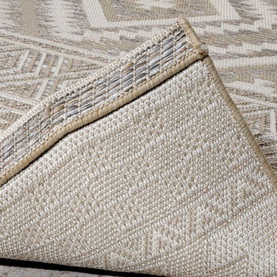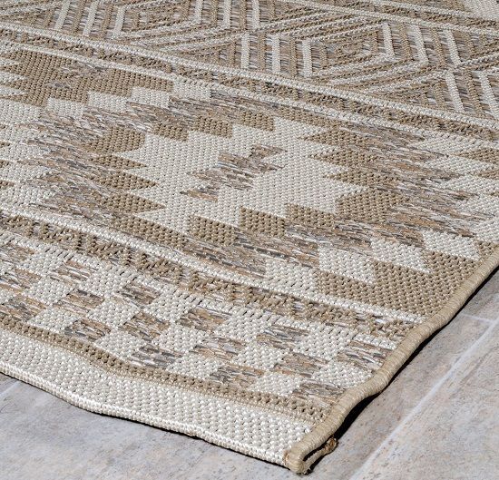Χαλί μηχανής 133x190 από τη σειρά Novo της εταιρείας Tzikas Carpets, με γεωμετρικό σχέδιo και μοντέρνο στυλ. Εκλεπτυσμένο χαλί με καλοδουλεμένη μίξη χρωμάτων σε μπεζ και εκρού αποχρώσεις. Ιδανικό για όλους τους χώρους, θα στολίσει το σπίτι σας τους καλοκαιρινούς μήνες, προσδίδοντας μία πινελιά πολυτέλειας. Μπορεί να τοποθετηθεί σε εσωτερικό ή και σε εξωτερικό χώρο. Είναι κατασκευασμένο από συνθετική ψάθα 100% frise πολυπροπυλένιο. Το βάρος του χαλιού είναι 1.700gsm. Το υπόστρωμα είναι υφαντό που το καθιστά ανθεκτικό στη χρήση και τις πλύσεις. Είναι αντιστατικό επομένως δεν μαγνητίζει χνούδια, μικροσωματίδια και σκόνη στην επιφάνειά του, ενώ το σκούπισμα με ηλεκτρική σκούπα είναι εύκολο και αποτελεσματικό. Τα χαλιά της εταιρείας Tzikas Carpets είναι υποαλλεργικά και φιλικά προς την υγεία και το περιβάλλον.