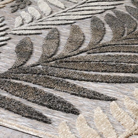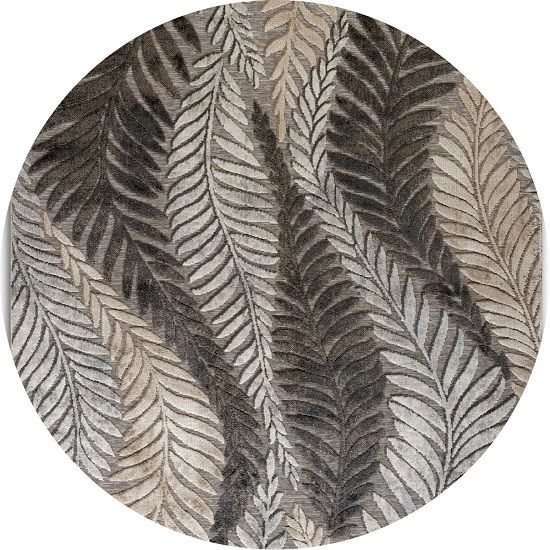 Στρογγυλό μηχανοποίητο χαλί 4 εποχών με διάμετρο 160εκ. από τη σειρά Boheme της εταιρείας Tzikas Carpets, με tropical σχέδιο σε μοντέρνο στυλ. Εκλεπτυσμένο χαλί με καλοδουλεμένη μίξη χρωμάτων σε γκρι αποχρώσεις με μπεζ, εκρού και καφέ λεπτομέρειες. Είναι κατασκευασμένο με ανεξίτηλα νήματα σύνθεσης 100% frise πολυπροπυλένιο και έχει ανάγλυφο μοτίβο. Μπορεί να τοποθετηθεί σε όλους τους χώρους του σπιτιού, αναβαθμίζοντας την αισθητική τους, καθώς προσδίδει μία πινελιά πολυτέλειας. Iδανικό για όλες τις εποχές με μοναδική αίσθηση στο πάτημα, θα στολίσει τον χώρο σας καθόλη τη διάρκεια του έτους. Το βάρος του χαλιού είναι 1.600gsm και έχει πέλος ύψους 3mm. Μπορεί να τοποθετηθεί σε εσωτερικό ή και εξωτερικό χώρο. Το υπόστρωμα είναι υφαντό και καθιστά το χαλί ανθεκτικό στην χρήση και τις πλύσεις. Είναι αντιστατικό επομένως δεν μαγνητίζονται χνούδια, μικροσωματίδια και σκόνη στην επιφάνειά του, ενώ το σκούπισμα με ηλεκτρική σκούπα είναι εύκολο και αποτελεσματικό. Τα χαλιά της εταιρείας Tzikas Carpets είναι υποαλλεργικά και φιλικά προς την υγεία και το περιβάλον.