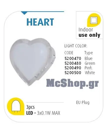 Λαμπάκι νυκτός μπλέ "καρδιά" με 3 led x0.1w max διακόπτη on-off