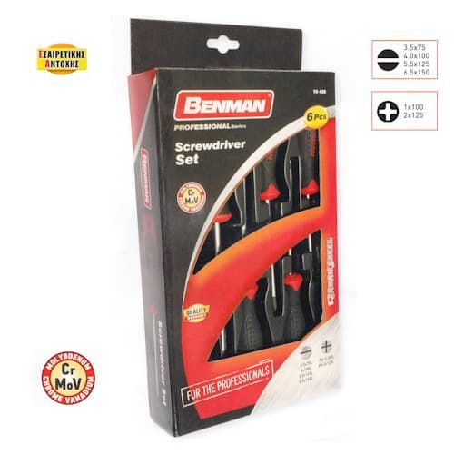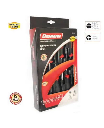 Σετ 6 τεμ κατσαβίδια CrMov (ίσια και σταυρού PH) Benman 70420