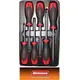κατσαβίδια CR-V-Mo:1 κατσαβίδι ίσιο 3,5×75,1 κατσαβίδι ίσιο 4×100, 1 κατσαβίδι ίσιο 5,5×125, 1 κατσαβίδι ίσιο 6,5×150, 1 κατσαβίδι σταυρού PZ1x100, 1 κατσαβίδι σταυρού PZ2x125