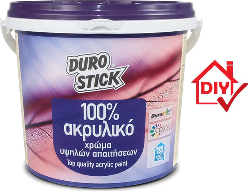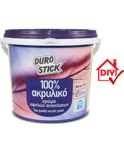 Το DUROSTICK ΑΚΡΥΛΙΚΟ 100% είναι ιδανικό για την προστασία και τη διακόσμηση νέων και παλιών επιφανειών από σοβά, μπετόν, τσιμεντοσανίδα, κατάλληλα προετοιμασμένα προκατασκευασμένα δομικά στοιχεία κ.ά. Εσωτερικά, εφαρμόζεται σε χώρους όπου απαιτείται συχνός καθαρισμός, όπως παιδικά δωμάτια, χώρους εκτεθέμενους στη νικοτίνη, δημόσια και ιδιωτικά γραφεία, χώρους εστίασης κ.ά.