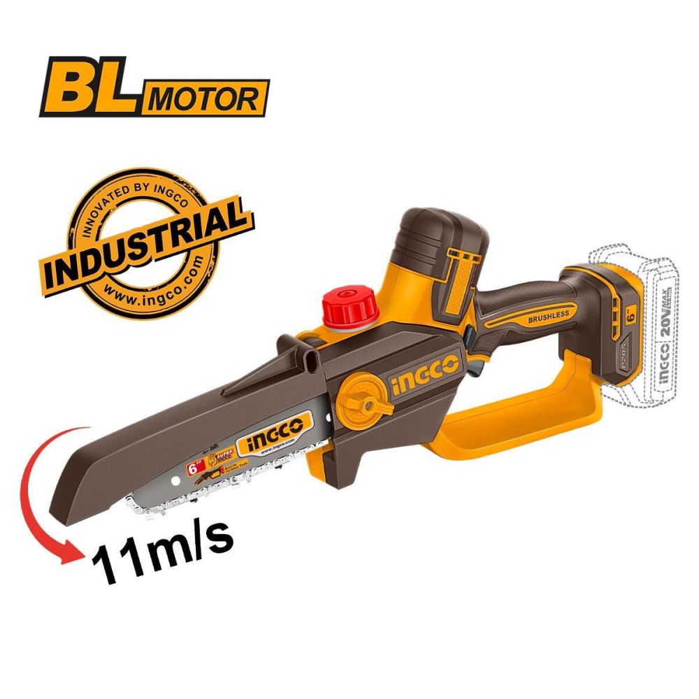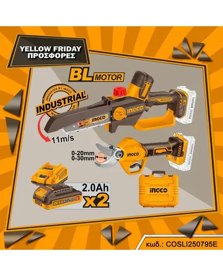 Αλυσοπρίονο & Ψαλίδι Κλαδέματος Brushless 20V με 2 Μπαταρίες 2Ah και Θήκη INGCO COSLI250795E