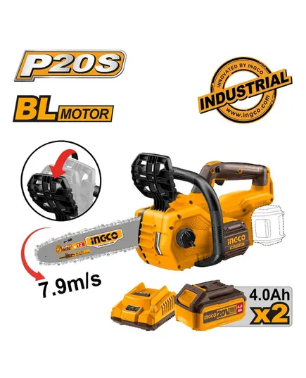 Αλυσοπρίονο Μπαταρίας 2x4Ah Brushless 20V 6.5kg με Λάμα 30cm Ingco CGSLI201286