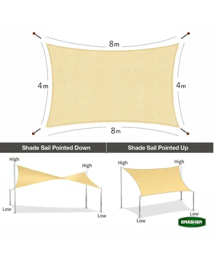 Αντιηλιακό Πανί σκίασης GRASHER Ορθογώνιο - μπεζ 4x8m 104155