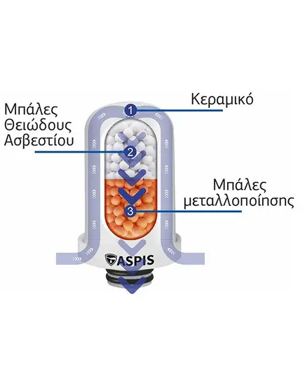 - 3° στάδιο: Μπάλες μεταλλοποίησης (συμβάλλουν στην αλκαλοποίηση του νερού και προσδίδουν αντιοξειδωτική δράση)