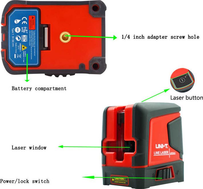 Αυτορυθμιζόμενο Γραμμικό Αλφάδι Laser Πράσινης Δέσμης 1.5V με Εύρος Εργασίας 10m Uni-T