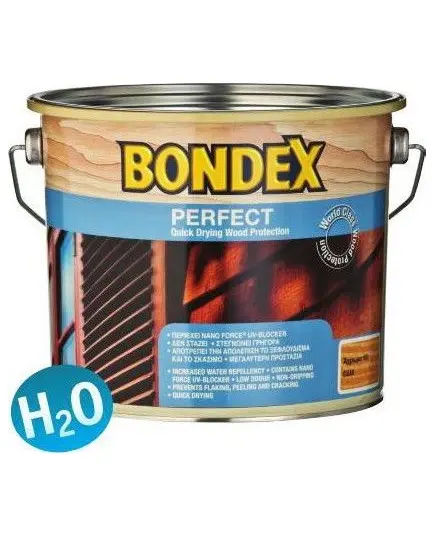 Το Bondex Perfect Wood Protection αναδεικνύει το ξύλο δίνοντας ένα διάφανο σατινέ τελείωμα που αφήνει τα νερά του ξύλου να φανούν. Είναι βερνίκι νερού θιξοτροπικό (δε στάζει), μυρίζει ελάχιστα, είναι εύκολο στην εφαρμογή του και εισχωρεί βαθιά στο ξύλο. Η τεχνολογία βραδείας αποδέσμευσης απελευθερώνει τα ενεργά συστατικά του μόνο όταν χρειάζεται, κάνοντας το περισσότερο ανθεκτικό.