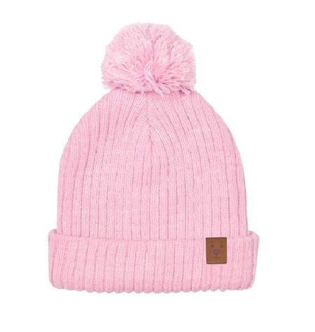 Βρεφικό πλεκτό σκουφί με ρεβέρ και pom pom "111799" Ροζ