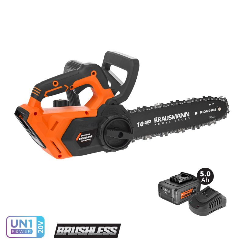 Αλυσοπρίονο μπαταρίας brushless 20V 25cm 2,3Kg 1x5Ah +Φορτιστής KRAUSMANN U30020-15B