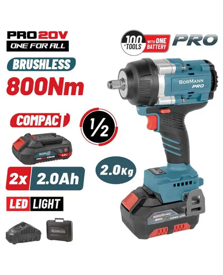 Brushless Μπουλονόκλειδο Μπαταρίας 20V 2x2Ah με Υποδοχή 1/2" Bormann Pro BBP5386X22C