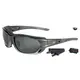 Οι πολυκαρβουνικοί φακοί είναι πολωτικοί (polarized) χρώματος γκρι (ασημί καθρέπτες εξωτερικά) και με την τεχνολογία 8-point bending, προσφέρουν ευρύ πεδίο όρασης, ενώ έχουν μεγάλη διάρκεια ζωής χάρη στις αντιχαρακτικές τους ιδιότητες.