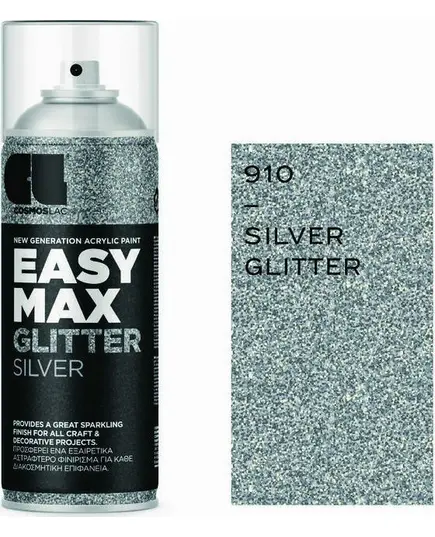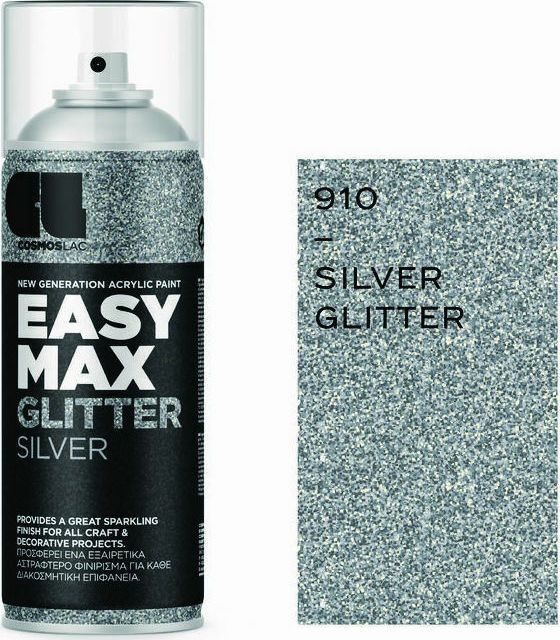 Cosmos Lac Σπρέι Βαφής Easy Max Ακρυλικό με Glitter Εφέ Silver No910 400ml