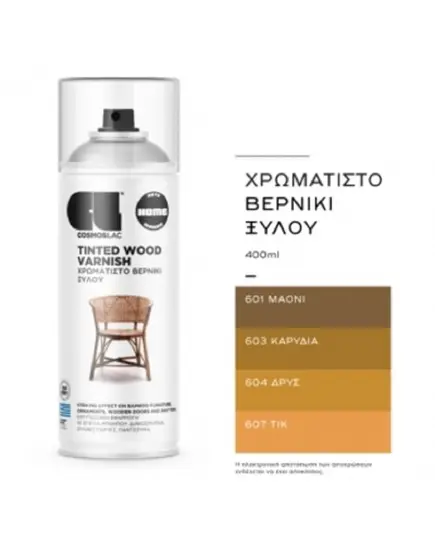 Cosmos Lac Σπρέι Βερνίκι Tinted Wood Varnish Oak Δρυς No604 400ml