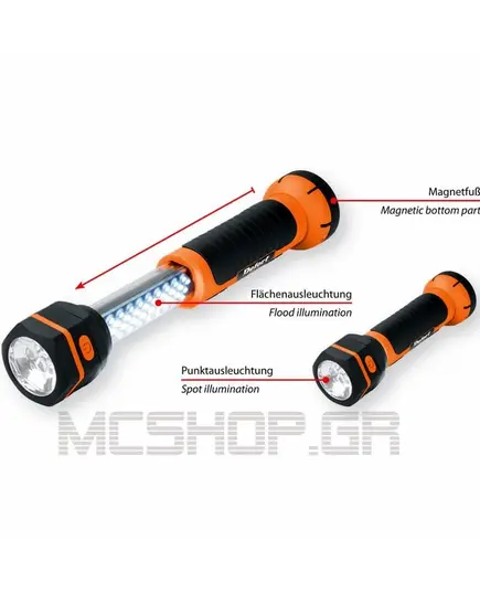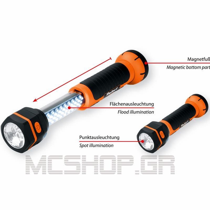 Φακός led χειρός Defort επαναφορτιζόμενος - πτυσσόμενος (26-35 εκατοστά) με μαγνήτη στην βάση 36led DDL-36