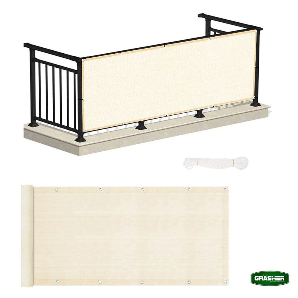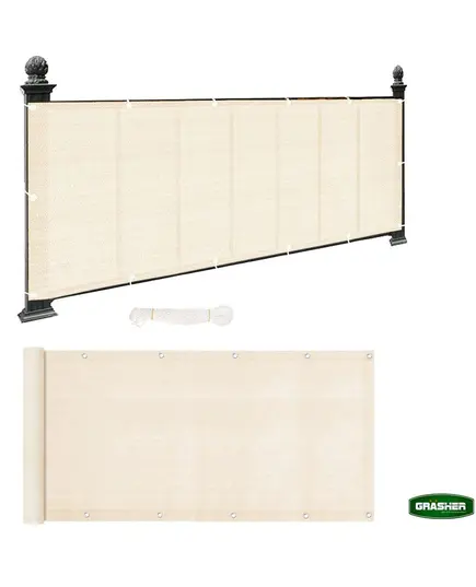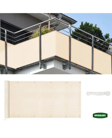 Διαχωριστικό δίχτυ μπαλκονιού 160gr/m² 0,75x6m GRASHER με κρίκους και σχοινί σε εκρού χρώμα