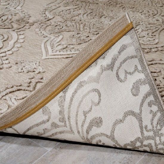 Διάδρομος μηχανής 4 εποχών φάρδους 67 εκατοστών που κόβεται και ρελιάζεται στο μήκος που επιθυμείτε από τη σειρά Harmony της εταιρείας Tzikas Carpets, με vintage σχέδιο. σε μπεζ χρώμα με καφέ και εκρού λεπτομέρειες. Εκλεπτυσμένο χαλί με καλοδουλεμένη μίξη χρωμάτων . Μπορεί να τοποθετηθεί σε όλους τους χώρους του σπιτιού, αναβαθμίζοντας την αισθητική τους, καθώς προσδίδει μία πινελιά πολυτέλειας. Iδανικό για όλες τις εποχές με μοναδική αίσθηση στο πάτημα, θα στολίσει τον χώρο σας καθόλη τη διάρκεια του έτους. Είναι κατασκευασμένο με ανεξίτηλα νήματα από heatset πολυπροπυλένιο και polyester. Η βάση είναι chenille ψάθα, ενώ το μοτίβο παρουσιάζει έντονο ανάγλυφο. Το βάρος του χαλιού είναι 1.400gsm και έχει πέλος ύψους 4mm. Το υπόστρωμα είναι υφαντό και καθιστά το χαλί ανθεκτικό στην χρήση και τις πλύσεις. Είναι αντιστατικό επομένως δεν μαγνητίζονται χνούδια, μικροσωματίδια και σκόνη στην επιφάνειά του, ενώ το σκούπισμα με ηλεκτρική σκούπα είναι εύκολο και αποτελεσματικό. Τα χαλιά της εταιρείας Tzikas Carpets είναι υποαλλεργικά και φιλικά προς την υγεία και το περιβάλλον.Τιμή μέτρου.