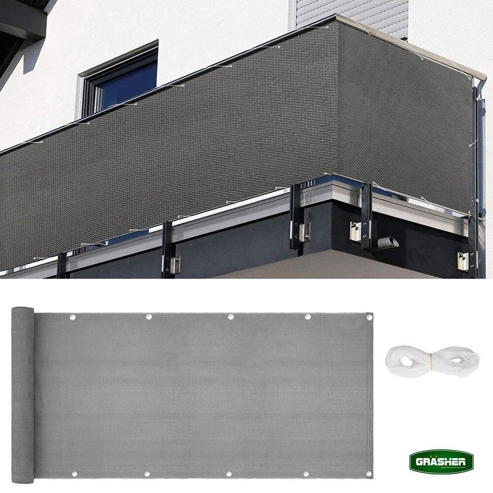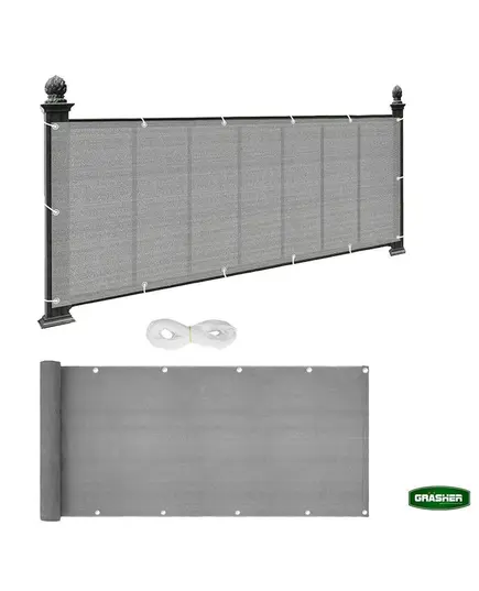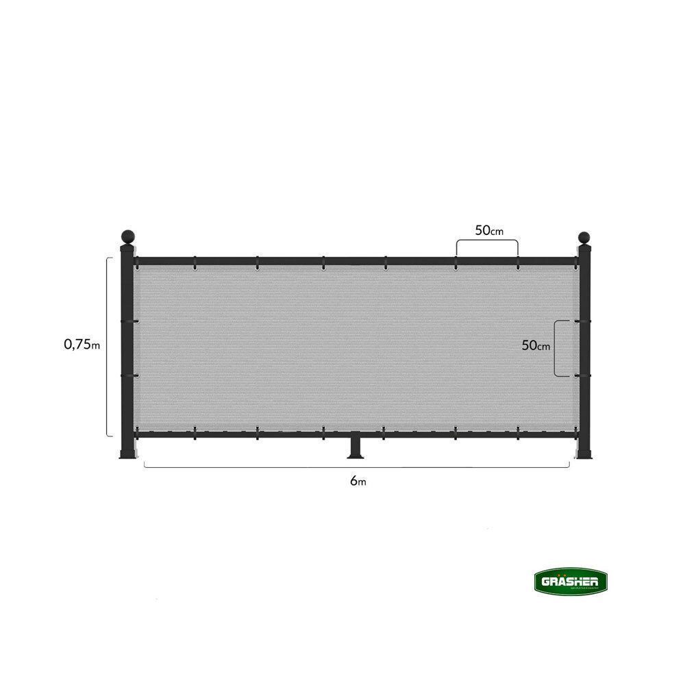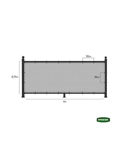 Διαχωριστικό δίχτυ μπαλκονιού 160gr/m² 1,20x6m GRASHER με κρίκους και σχοινί σε γκρι χρώμα
