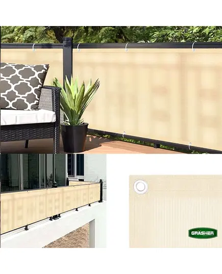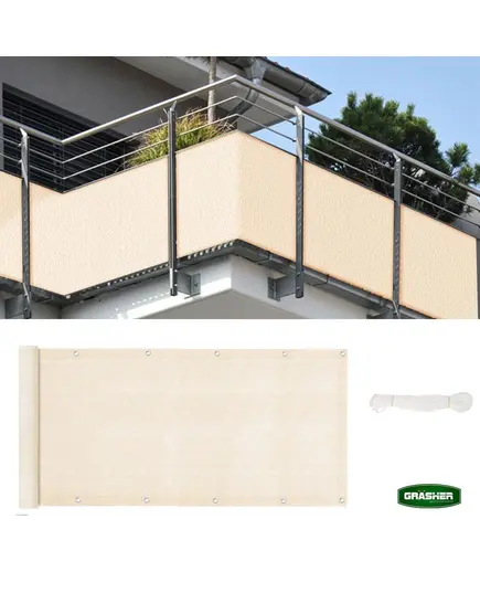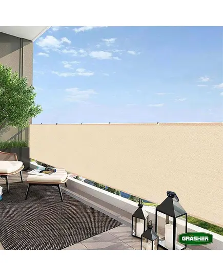 Διαχωριστικό δίχτυ περίφραξης 160gr/m² 1.50x6m GRASHER με κρίκους και σχοινί σε εκρού χρώμα
