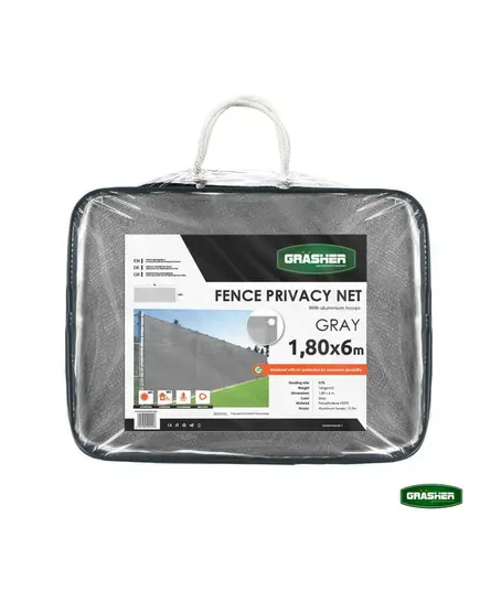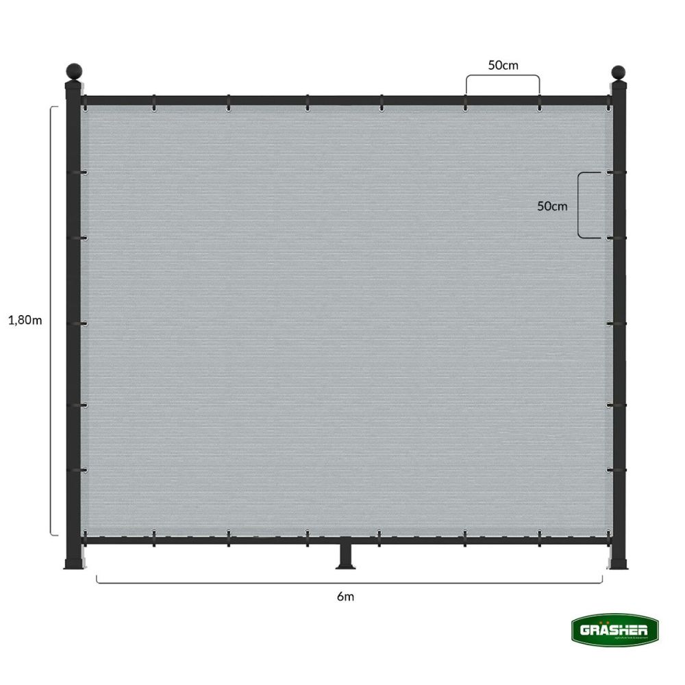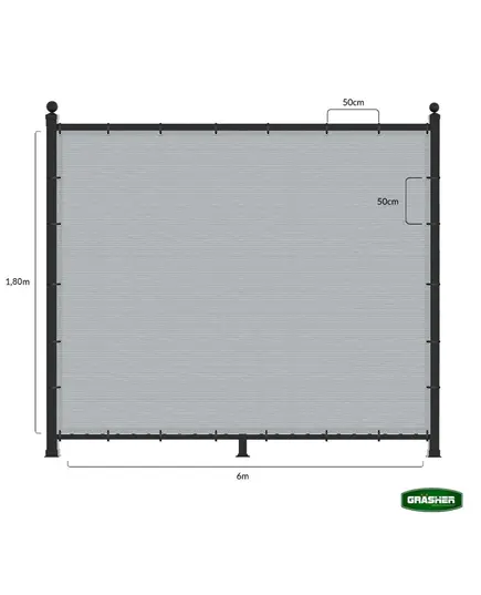 Διαχωριστικό δίχτυ περίφραξης 160gr/m² 1,80x6m GRASHER με κρίκους και σχοινί σε γκρι χρώμα