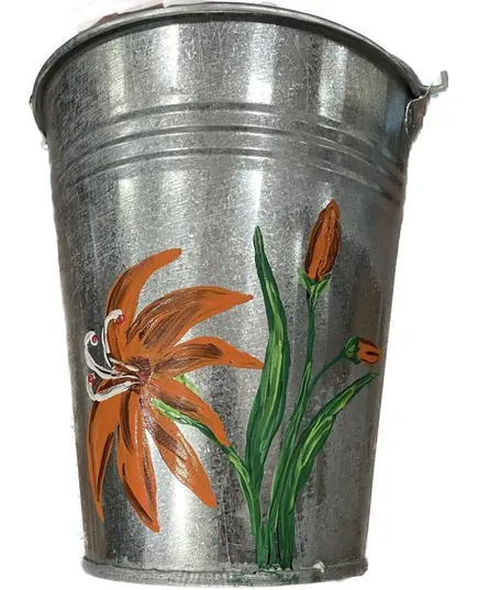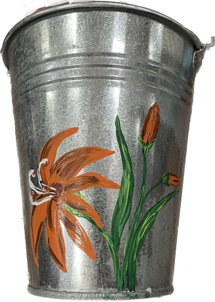 Διακοσμητικός μεταλλικός κουβάς ηλεκτροστατικά λευκός με ύψος 17 εκατοστά, βάση Φ10 και χείλος Φ15 "Λίλιουμ"