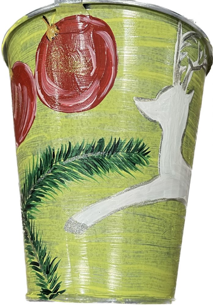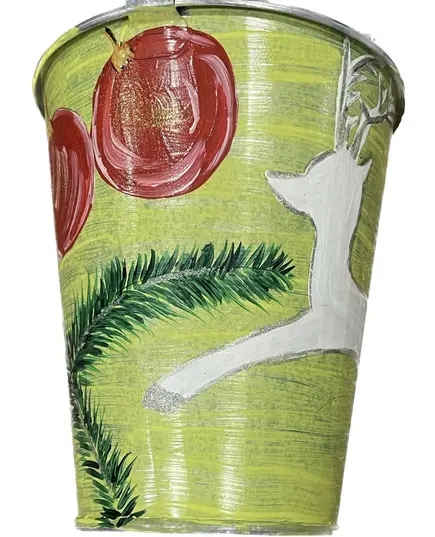 Διακοσμητικός μεταλλικός κουβάς ηλεκτροστατικά λευκός με ύψος 17 εκατοστά, βάση Φ10 και χείλος Φ15 "Στολίδια"