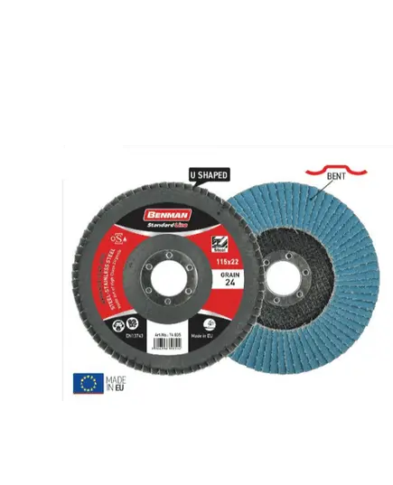 Δίσκος φτερωτός με κούρμπα Benman Maxpower. Ιδανικός για μέταλλα και ανοξείδωτα (ξεχόνδρισμα, αφαίρεση). Εξωτερική διάμετρος 115mm και 125mm. Με λειαντικό Ceramic sk 865 k (τεχνητό διαμάντι) της VSM.