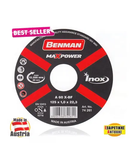 Δίσκος κοπής inox Benman Maxpower Φ230 x2.0mm 74263