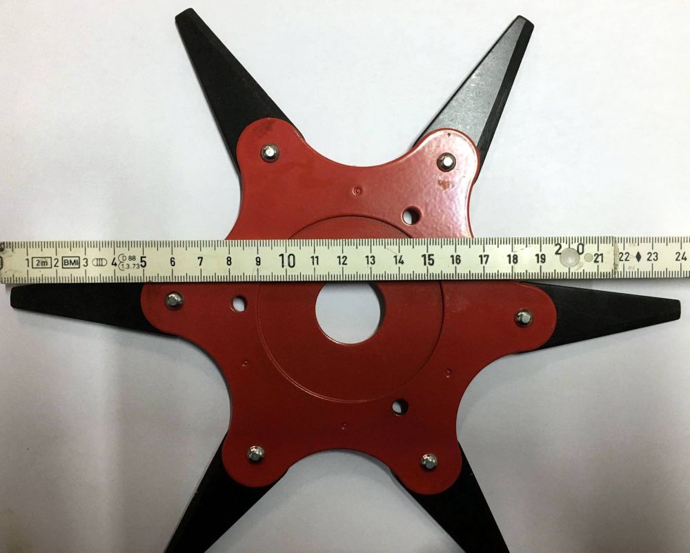 - 15X15 εκατοστά με 6 μεταλλικές λεπίδες 5 εκατοστών (συνολική έκταση κοπής 25 εκατοστά