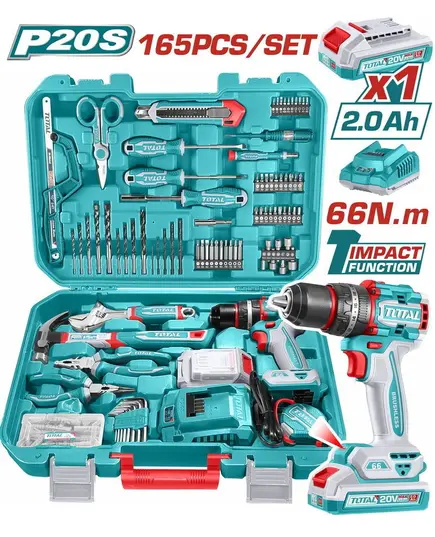 Δραπανοκατσάβιδο Κρουστικό Μπαταρίας TOTAL Li-ion 20V / 66Nm με 1 Μπαταρία 2Ah BL Motor Σέτ 165 τεμαχίων Επαγγελματικό ( THKTHP11652E )