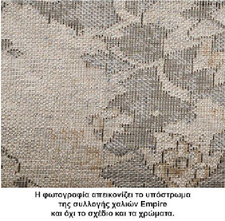Διάδρομοσ μηχανής φάρδους 67 εκατοστών από τη σειρά Empire της εταιρείας Tzikas Carpets. Απαλό αλλά ανθεκτικό χαλί με εντυπωσιακό μοντέρνο σχέδιο και καλοδουλεμένη μίξη χρωμάτων. Μπορεί να τοποθετηθεί σε όλους τους χώρους του σπιτιού, αναβαθμίζοντας την αισθητική τους. Πρόκειται για ιδιαίτερα εκλεπτυσμένο χαλί που θα προσθέσει μία πινελιά πολυτέλειας στην διακόσμηση του χώρου σας. Η βάση του χαλιού είναι σε μπεζ απόχρωση, ενώ φέρει καφέ και γκρι διακοσμητικές λεπτομέρειες. Είναι κατασκευασμένο με ανεξίτηλα νήματα από heatset πολυπροπυλένιο και polyester. Είναι πυκνό και στιβαρό χαλί με πυκνότητα 672.000 κόμπους/τ.μ. και βάρος 2.630gsm. Το πέλος ύψους 10mm είναι ιδιαίτερα απαλό στην αφή, ενώ προσδίδει μία μοναδική αίσθηση στο πάτημα. Το υπόστρωμά του είναι υφαντό, που προσδίδει αντοχή στο χρόνο. Είναι αντιστατικό άρα το σκούπισμα με ηλεκτρική σκούπα είναι εύκολο και αποτελεσματικό. Τα χαλιά της εταιρείας Tzikas Carpets είναι υποαλλεργικά και φιλικά προς την υγεία. Τα χαλιά της εταιρείας Tzikas Carpets έχουν πιστοποίηση του Γερμανικού ινστιτούτου Oeko-Tex Standard 100.Τιμή μέτρου.