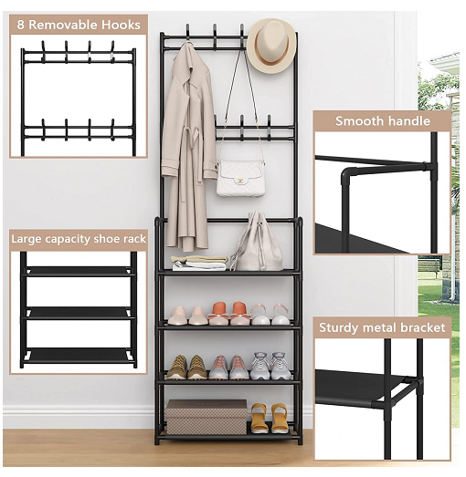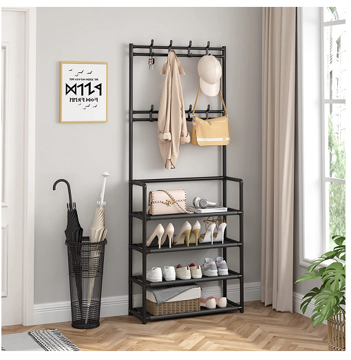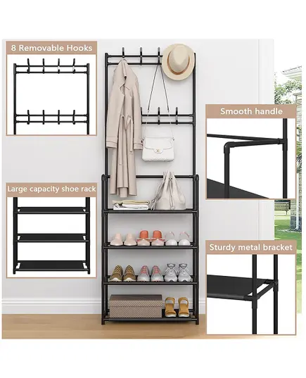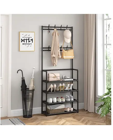 - Μια απίστευτα λειτουργική και πολύ κομψή ραφιέρα με παπουτσοθήκη και κρεμάστρα – καλόγερο. Ιδανική για έπιπλο εισόδου, για την τουαλέτα, το δωμάτιο, το Hall.