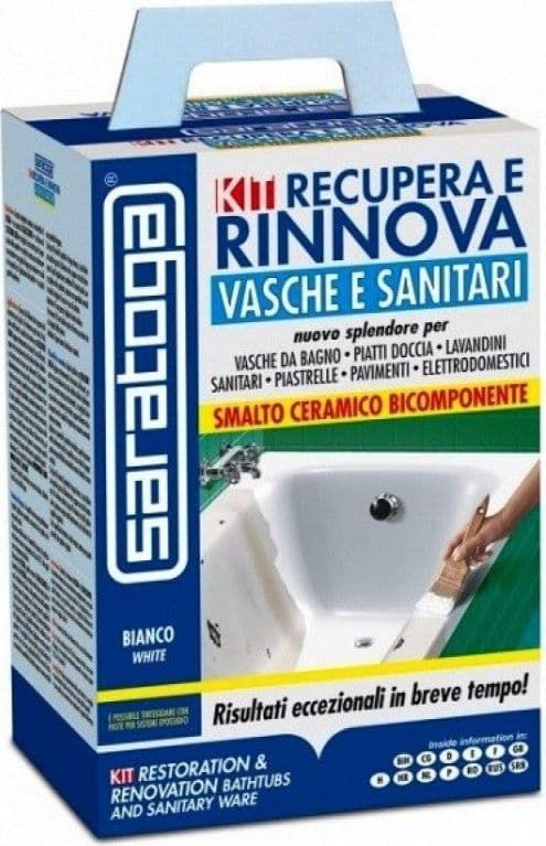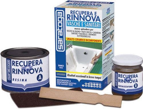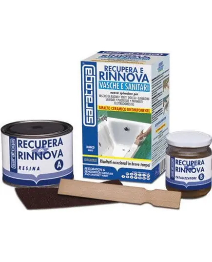 Επισκευαστικό σμάλτο για πορσελάνες, πλακάκια, εμαγιέ, εποξική κόλλα λευκή RECUPERA & RINNOVA ΚΙΤ Saratoga 375ml.
