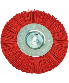 Περιγραφή Βούρτσα "ρόδα" δραπάνου με νάυλον τελείωμα και άξονα, κατάλληλη για μαλακό καθαρισμό μετάλλων όπως σίδηρος, χαλκός, αλουμίνιο, ορείχαλκος, καθώς και για πλακάκια, κεραμικά και ξύλο. Κωδικός:  74 322 Διάμετρος:  75mm Στροφές / min:  4.500