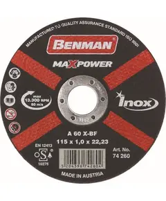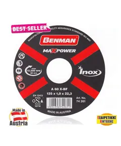Δίσκος κοπής INOX Βenman Maxpower. Μακράς διαρκείας. Γρηγορότερη κοπή. Χωρίς κούρμπα. Διάμετρος: 125mm Διάμετρος οπής: 22,23mm