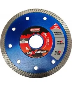 Διαμαντόδισκος Benman 74494 MaxPower για κοπή πλακιδίων, κεραμικών και γρανίτη. Αερόψυκτος, για χρήση σε στεγνή ή υγρή επιφάνεια. Υψηλή ταχύτητα και απόλυτη ακρίβεια στην κοπή. Διάμετρος: 115mm. Πάχος: 1,2mm. Πλάτος δοντιού: 7mm. Υψηλή ταχύτητα κοπής. Max. στροφές: 13.300/min.