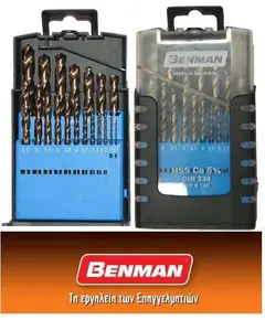 Σετ 19 τεμ τρυπάνια αέρος HSS DIN 338 Benman .